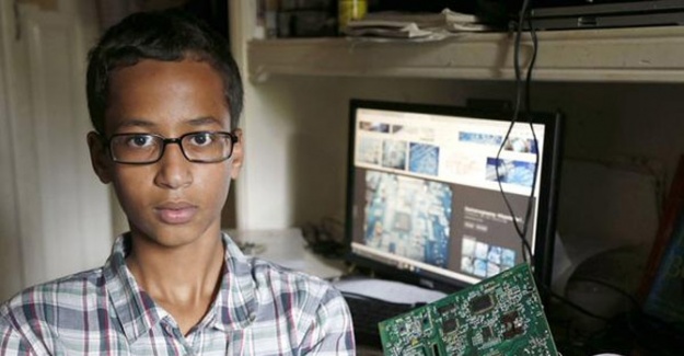 ABD’de Ahmed Muhammed isimli 14 yaşındaki Müslüman öğrenci, okula götürdüğü el yapımı dijital saat bomba sanılınca kelepçe takılarak gözaltına alındı.