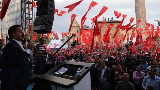 Çelik, Yakutiye Kent Meydanı'nda, Cumhurbaşkanlığı himayesinde İstanbul'da düzenlenen Demokrasi ve Şehitler Mitingi'ne destek vermek için toplanan vatandaşlara hitap etti.