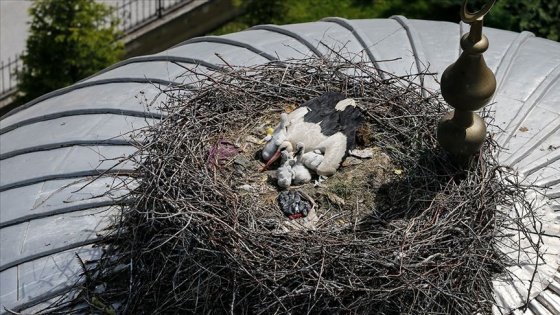 Ankara'nın Pursaklar ilçesi Saray Cumhuriyet Mahallesi'nde 19 yıl önce yapımı tamamlanan Nuryağdı Camisi'ne her yıl şubatta gelen leyleklerin kubbeye yaptığı yuvaya, cami yöneticileri de özenle bakıyor.