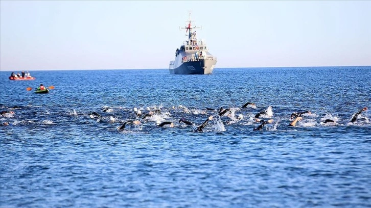 Sabah 07.00'de, Kabatepe açıklarında bekleyen P-1205 borda numaralı "TCG Karabiga" gemisinden Çanakkale Boğaz ve Garnizon Komutanı Tuğamiral Mustafa Turhan Ecevit'in verdiği start ile uzun mesafe triatlon yarışına başlayan sporcular sırasıyla 2 bin 100 metre yüzüp, bisikletle 112 kilometre katedecek.