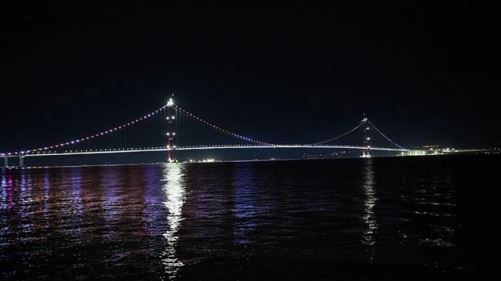 Turuncu ışıklandırma, 2 bin 23 metre orta açıklık ve 770'er metre yan açıklıkları ile 3 bin 563 metre uzunluğundaki köprüden geçen araç sürücülerinin de dikkatini çekiyor.