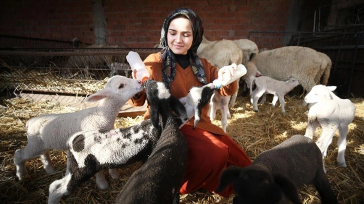 Genç girişimci Sueda Demirci, AA muhabirine, annesi, babası ve babaannesiyle birlikte hayvancılık yaptıklarını söyledi.