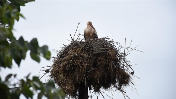 Köy sakini Erol Öztoprak, gazetecilere, evlerinin önündeki elektrik diğerine 6 yıldır yuva yapan leyleklerin, ağustos ayına kadar burada kaldığını söyledi.