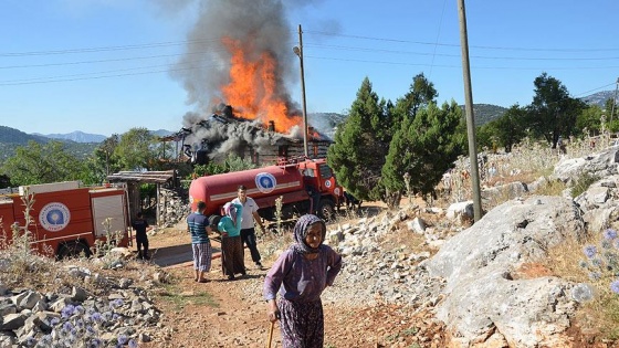 Antalya'nın Akseki ilçesine bağlı Büyükalan Mahallesi'ndeki 700 yıllık olduğu belirtilen ahşap düğmeli evde henüz belirlenemeyen nedenle yangın çıktı.