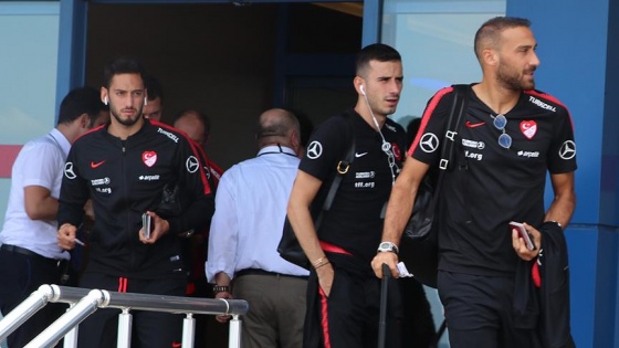 Milli takım için havalimanında güvenlik önlemleri alındı. Kafile, havalimanından kamp yapacağı otele geçti.