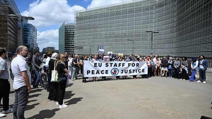 Schuman Meydanı'nda toplanan kalabalık, AB'nin Gazze'ye yönelik politikasını protesto ederek AB-İsrail arasındaki ortaklık anlaşması ve üye ülkelerden yapılan silah satışlarının "insan haklarına saygı" şartına bağlanmasını istedi.