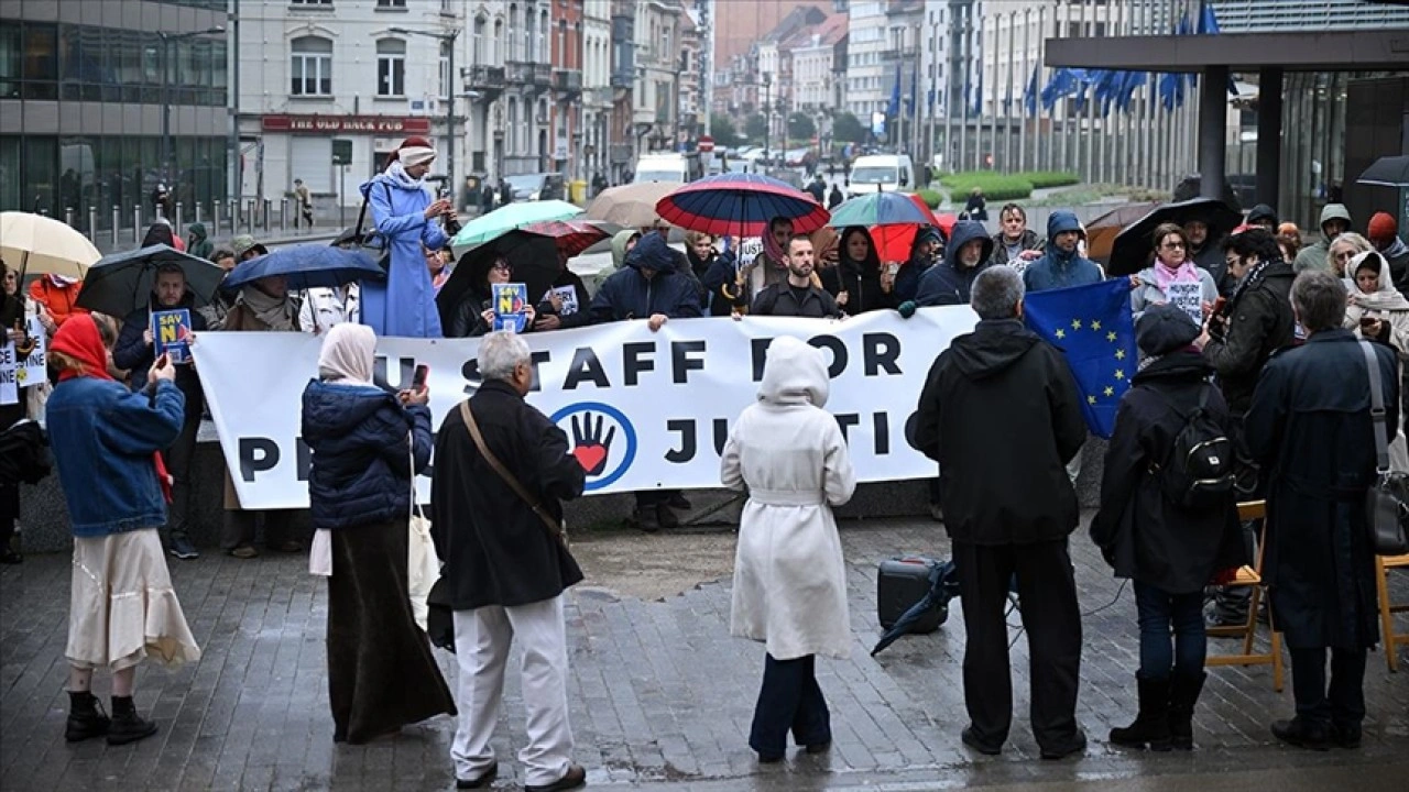 AB'nin farklı kurumlarında çalışan ve her perşembe AB Komisyonu önünde Gazze için toplanan personel, bu haftaki eylemlerinde Fransa'nın Marsilya kentinde 31 Mart'ta "Filistin'de adalet" için açlık grevine başlayan göstericileri ağırladı.