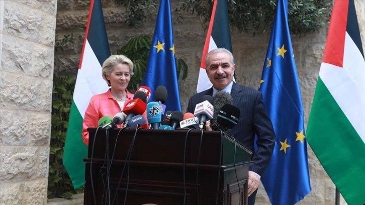 İşgal altındaki Batı Şeria’yı ziyaret eden Von der Leyen, Ramallah’ta Filistin Başbakanı Muhammed Iştiyye ile bir araya geldi.