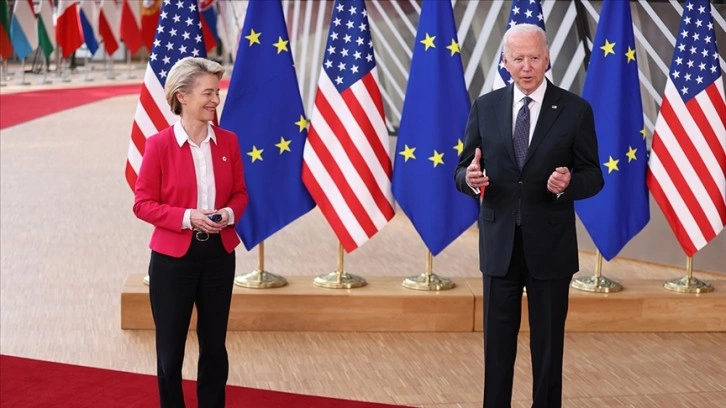 ABD Başkanı Joe Biden ve AB Komisyonu Başkanı Ursula von der Leyen, ABD'nin Brüksel'deki Büyükelçilik binasında basına açıklamalarda bulundu.