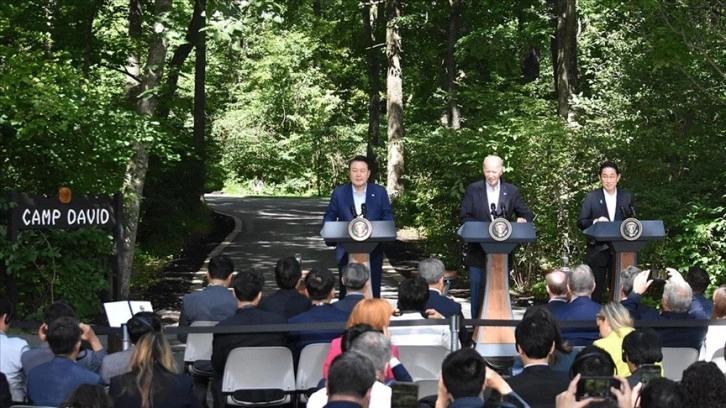 "Camp David Ruhu" başlığı atılan ortak bildiride, "Biz, Japonya, Kore Cumhuriyeti ve ABD liderleri, yeni bir üçlü ortaklık çağını başlatmak için Camp David'de toplandık. Bunu, ülkelerimiz ve vatandaşlarımız için benzersiz bir fırsatın olduğu bir zamanda ve tarihin bir dönüm noktasında, jeopolitik rekabetin, iklim krizinin, Rusya'nın Ukrayna'ya karşı saldırgan savaşının ve nükleer provokasyonların bizi sınadığı bir zamanda yapıyoruz." ifadelerine yer verildi.