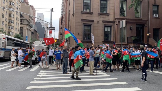 Amerika'da yaşayan Azerbaycan ve Türkiye vatandaşları, New York'taki Birleşmiş Milletler Genel Merkezi (BMGM) önünde, Ermenistan'ın Azerbaycan'a yönelik saldırgan ve yayılmacı politikasını protesto etti.