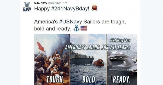 "Amerika'nın denizcileri çetin, cesur ve hazırdır." ifadesine yer verilen iletide, elinde Türk bayrağıyla savaşan askerlerin öldürüldüğünü gösteren temsili bir tablo yer alıyordu.