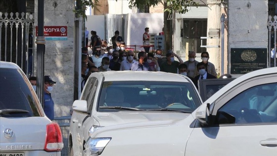 Camiye giriş ve çıkışı, turistler için ayrılan kapıdan yapan heyet, 45 dakika süren ziyaretin ardından buradan ayrıldı.