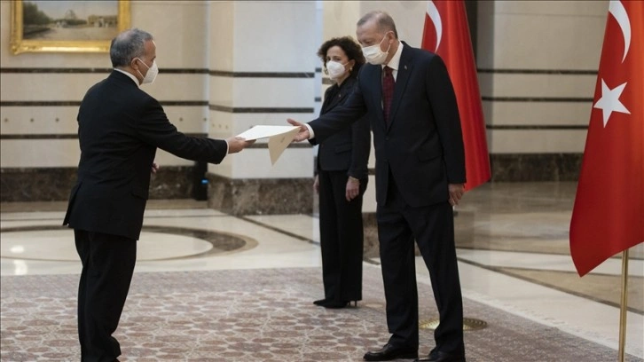 Cumhurbaşkanlığı Külliyesi'ndeki kabulde, Büyükelçi Flake, Erdoğan'a güven mektubu sundu.