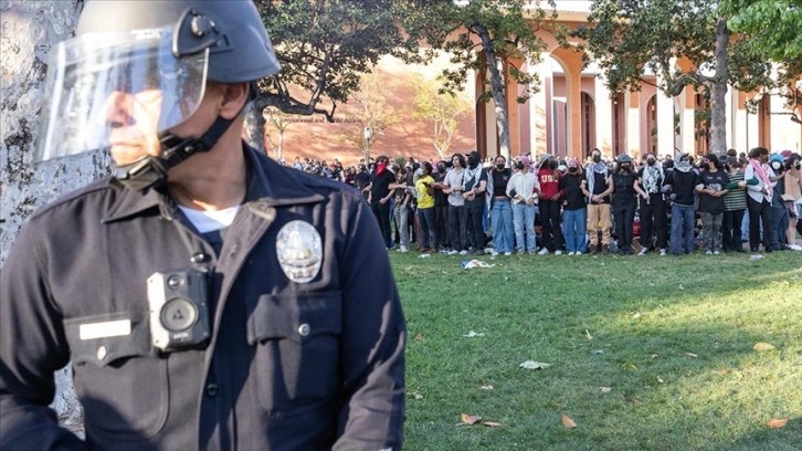 ABD'deki üniversitelerde polis müdahalesiyle Filistin destekçisi öğrencilerin eylemleri bastırılmaya çalışılırken, USC'de polis, göstericilerin Gazze Dayanışma Kampı'nın etrafını sardı.
