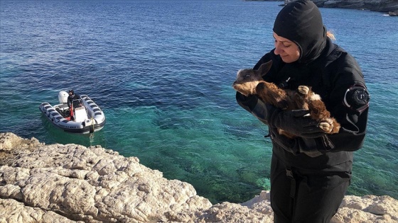 Oğlağın durumunu merak ederek adaya çıkan dalgıçlar, ön ayaklarının çarpık olduğunu gördükleri hayvanı bota alarak Karaburun Dalış Merkezine götürdü.