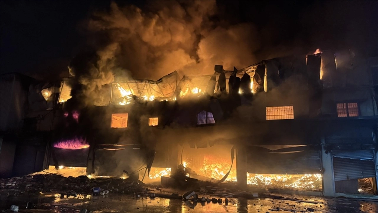 Bitişik iş yerlerine de sıçrayan yangını söndürme çalışmaları devam ediyor.