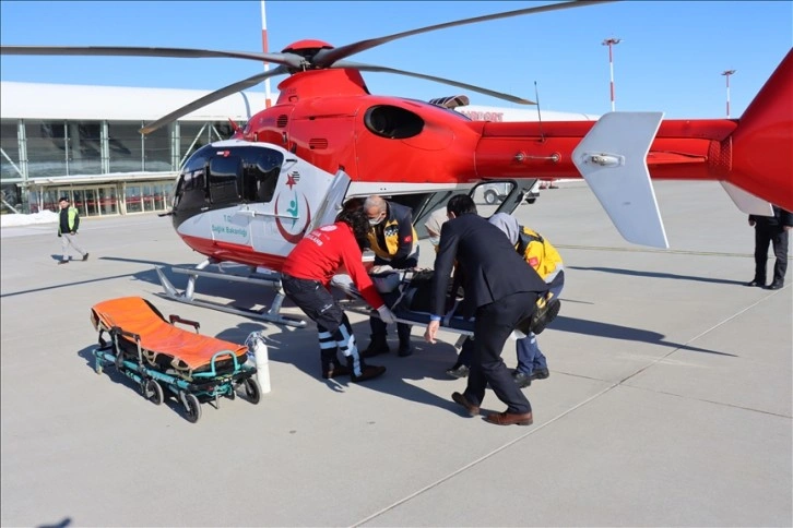 Kar nedeniyle yol durumunun elverişli olmaması üzerine Sağlık Bakanlığı Hava Ambulans Operasyon Merkezinden ambulans helikopter talebinde bulunuldu.