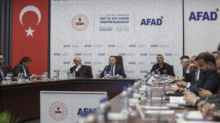 Cumhurbaşkanı Yardımcısı Fuat Oktay başkanlığında, 6 Şubat'ta meydana gelen Kahramanmaraş merkezli depremlerin ardından yürütülen çalışmalara ilişkin deprem koordinasyon toplantısı yapıldı.