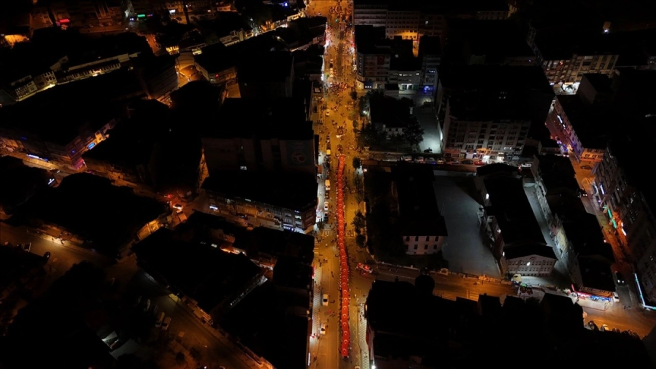 Kurtuluş Caddesi'nden 41'inci Komando Tugay Komutanlığı Birlikleri ve Deniz Kuvvetleri Komutanlığı Bandosu eşliğinde başlayan fener alayında vatandaşlar, ellerinde Türk bayrakları ve meşalelerle, Anıtpark'a kadar yürüdü.