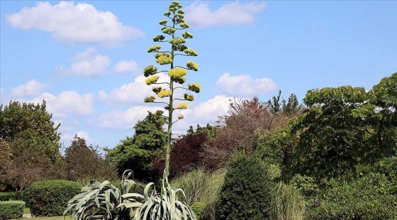 Türkiye'de "Sabır Otu" olarak bilinen bitkinin 50-70 yıllık ömründe tek bir kez çiçek açtığını dile getiren Akkemik, Türkiye'ye genellikle süs bitkisi olarak kullanılan Agave'nin, kurak koşullara adapte olduğu için diğer bitkilere göre yaklaşık 10 kat daha fazla su tutabildiğini söyledi.
