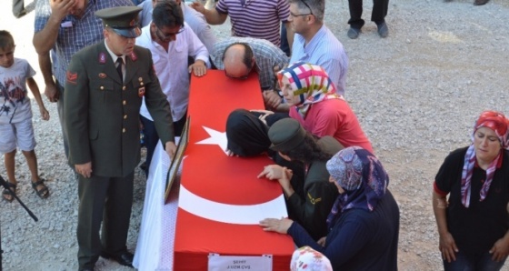 Oğlunun tabutuna sarılan acılı anne Ayşe Karaman, "Oğlum seni ne yoklukta büyüttüm. Anneannen, deden, bizler dururken sen niye gittin? Jandarma eve gelmezse inanmayacaktım yavrum. Güle güle git oğlum" diyerek gözyaşı döktü.