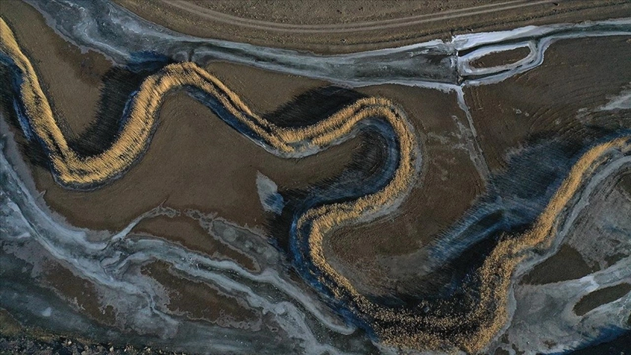 Yüzeyi buzla kaplanan alanlar dronla görüntülendi.