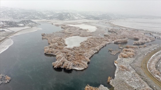 Iğdır ve Ağrı sınırındaki Ağrı Dağı eteklerinde yer alan Ağrı Dağı Milli Parkı'ndaki sulak alanlar, hava sıcaklığının sıfırın altına düşmesiyle buzla kaplandı.