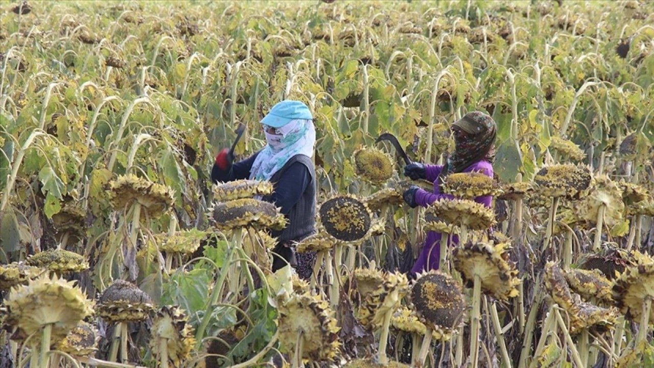 Kentin verimli toprakları ve sulama imkanlarının gelişmesiyle geniş ovada çiftçilerce yaklaşık 34 bin dekarlık alanda ekilen çerezlik ayçiçeğinin hasadı devam ediyor.
