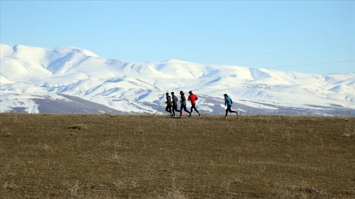 Öğretmenleri Abdurrahman Kara'nın koordinesinde her gün araziye giden sporcular, ısınma hareketlerinin ardından düz ve eğimli bölgelerde koşu yaparak güç depoluyor.
