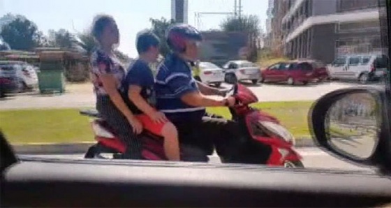 Görüntülerde motosiklet sürücüsünün kask takması, eşi ve çocuğunun ise kasksız olması ise dikkatlerden kaçmadı. Tüm uyarılara rağmen trafikte yaşanan tehlikeli anlar devam ediyor. Hatay'da aynı aileden üç kişi motosiklete binerek uzun süre yolculuk yaptı. Tehlikeye aldırış etmeden yoluna devam eden sürücü, bir vatandaş tarafından kaydedildi. Öte yandan motosiklet sürücüsü babanın kask takması, eşi ve oğlunun kask takmaması da dikkatlerden kaçmadı.