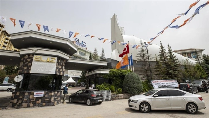 Cumhurbaşkanı ve AK Parti Genel Başkanı Recep Tayyip Erdoğan'ın başkanlık edeceği toplantı için Kızılcahamam'a gelen katılımcılar, toplantının yapılacağı Eliz Hotel'e giriş yapıyor.
