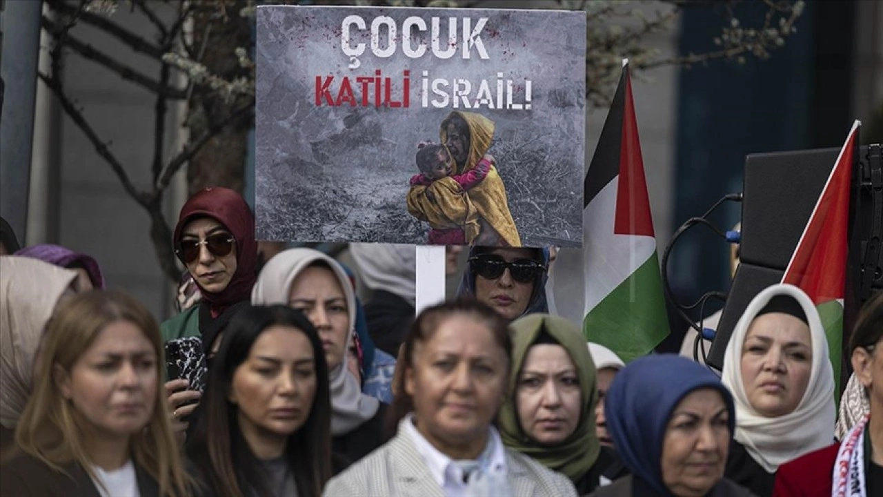 Grup üyeleri, ellerinde "Çocuk katili İsrail", "Anne olmak hiç bu kadar zor olmamıştı", "Gazze'de anne olmak" ve "Daha kaç annenin yüreği yanacak" yazılı pankartlar taşıdı.