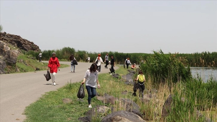 Türkiye'nin en büyük milli parkı olan Ağrı Dağı Milli Parkı'nın eteklerindeki Karasu Sulak Alanı'na gelen akademisyen ve öğrenciler, çevredeki çöpleri topladı.
