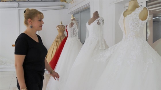 45 yıldır gelinlik diken Filiz Duran, büyük bir zevkle gelinlik diktiğini, genç kızların hayallerini süslemekten mutlu olduğunu söyledi.