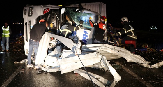 Kaza, Aksaray - Konya Karayolunun 5. kilometresinde meydana geldi. Edinilen bilgiye göre, Konya’dan Aksaray istikametine seyreden İsmail Erkan (48) idaresindeki 38 GG 722 plakalı meyve yüklü kamyon, Aksaray’a 5 kilometre kala Ticaret Borsası Kavşağı’nda sürücüsünün direksiyon hakimiyetini kaybetmesi sonucu önce refüje düştü, sonra karşı şeride geçerek yola devrildi.