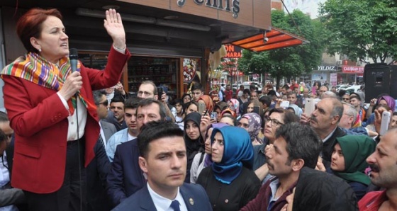 “Sizin çocuklarınız KPSS’den 85 puan bile alsa tayinleri yapılmıyor. Ama annelerinin dantel kefeniyle gezenler vardı ya, çakma kahramanlar, bu kişilerin ise 35 puanla rektörlerin, valilerin, belediye başkanlarının özel kalemliğinden bir ayda oturup, geçerek hepsi sizin çocuklarınızın hakkını, hukukunu çiğneyerek, kul hakkı alarak hepsi ballı maaşların, ballı ihalelerin peşinde. Meral Akşener’de hırsızlık yoktur, hırsızlığa müsaade de yoktur. Bu düzenin değişmesine ödleri patlıyor. Ama korkunun ecele faydası yok. Korku dağları beklemeye başladı. Anlıyoruz ki Tarzan zorda, Abbas yolcudur. Sonuç itibariyle bu yola çıktık. Her türlü iftira atanlara sesleniyorum; asla ve kat’a beni geri döndüremezsiniz. Benimle birlikte arkadaşlarımı da döndüremezsiniz. MHP’yi partinizin arka bahçesi yapamayacaksınız. Biz buna müsaade etmeyeceğiz. Bana Başbakan diyorsunuz, sonra Davutoğlu üzülüyor, sonra bana iftira atıyor. Pazar günü benimle olarak güç verdiniz. Bu sevgiyi, bana yaşattığınız heyecanı ölünceye kadar unutmayacağım. 2001 yılında sayın Başbakan Recep Tayyip Erdoğan’ın peşinden koşan insanların gözünde öfke vardı, bir diş sıkması vardı. Çünkü 28 Şubat’tan haksızlığa uğramışlardı ve bu haksızlığı kalplerinde derinlemesine hissetmişti insanlarımız. Şimdi bizimle beraber olan, bizimle beraber yol yürümeye başlayan kardeşlerimizin gözünde umut ve neşe görüyorum. Umudun, neşenin, gelecek umudunun çok daha geniş bir alanı kapladığını hep beraber biliriz. O öfkeyi maalesef AK Parti kalbimizden, vatandaşlarımızın gözünden alamadığı gibi 14 yılda tam tersine derinleştirdi. Muhteremler hem iktidar oldular hem muhalefet oldular. Ağlaya ağlaya bir 14 sene geçti. Bunlar evvel ezelden ağlıyor. Mübarekler küçük Emrah büyüdü, çoluk çocuğa karıştı. Bunlar hala ağlamaya devam ediyor. İki söz veriyorum; asla yolsuzluk ve hırsızlığa müsaade etmeyeceğim. İki, asla kimse beni kandırdı demeyeceğim. Ve buna bağlı olarak, varsa yanlışın sorumluluğunu alacağım, asla Allah’tan başka kimseye boyun eğmeyeceğim. Ve de kul hakkı yiyenlerin sonuna kadar peşinde olacağım."