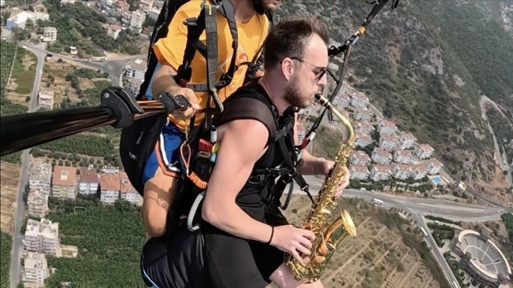 Kuram, havada bir süre saksafon çalarken aksiyon kamerasıyla kaydedildi.