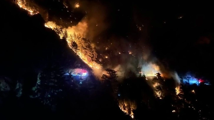 Antalya'nın Alanya ilçesinde ormanlık alanda çıkan yangına karadan müdahale ediliyor.