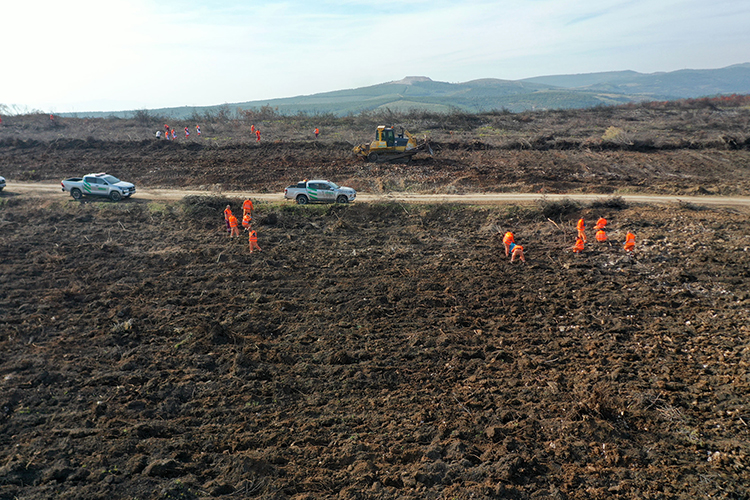 Toprağın üst kısmını temizleyen ekipler, ardından zemini işleyen orman ekipleri, fidanları dikime hazır hale getiriyor.