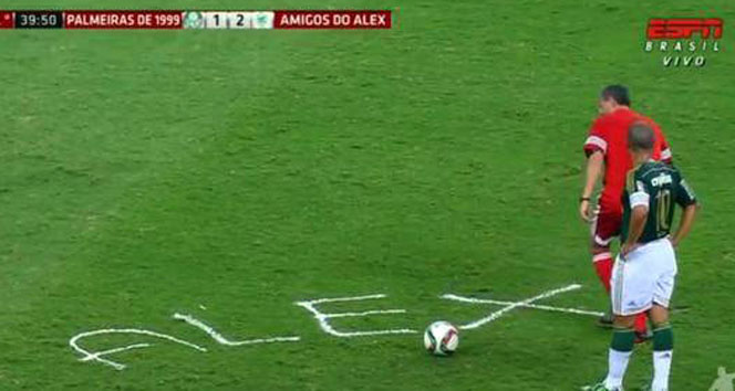 Maçın hakemi bir serbest vuruşta baraj çizgisi yerine köpükle Alex yazarak efsane kaptana güzel jest yaptı. Bu güzel hareket seyircilerden alkış aldı.