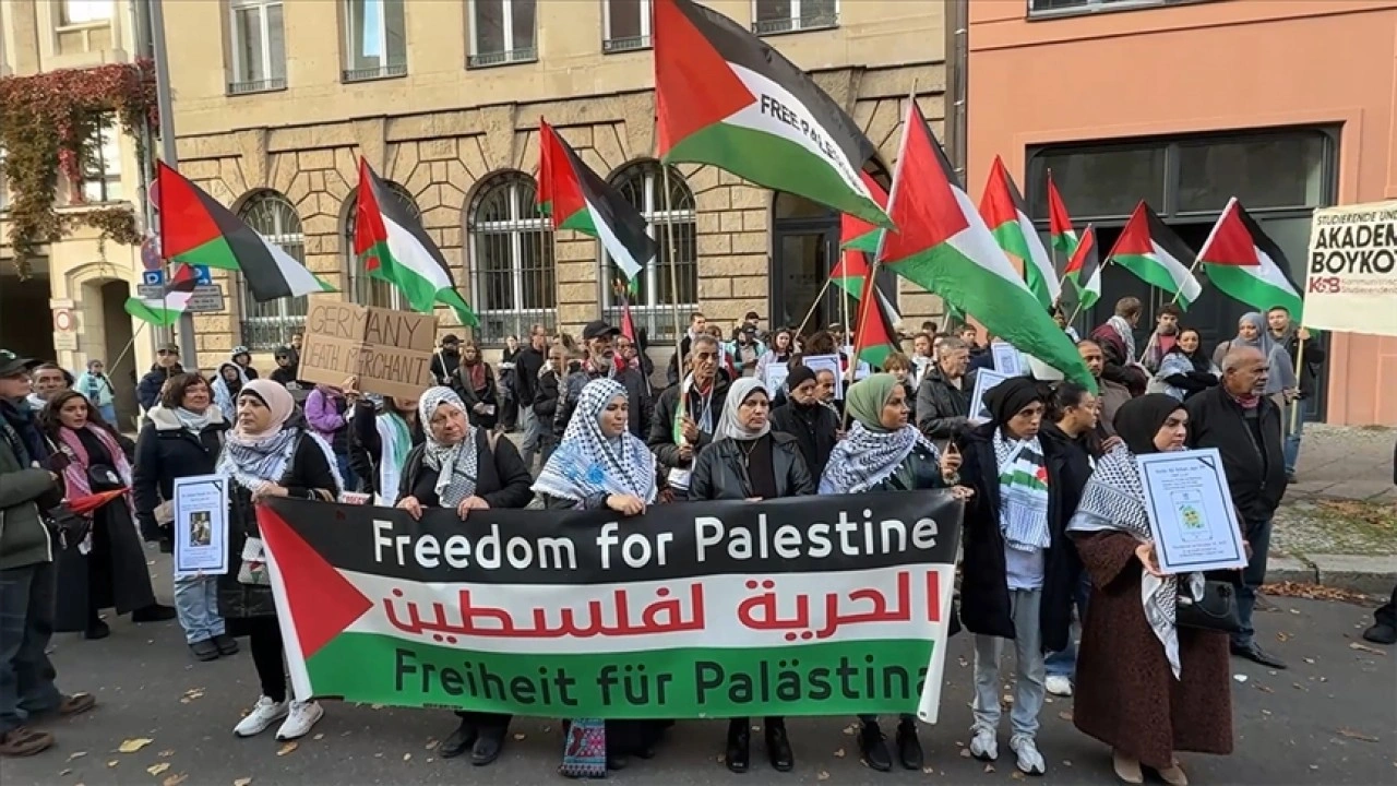 Almanya Eğitim Bakanları Konferansı öncesinde akademik ve kültürel alanda Filistin destekçilerine uygulanan baskıyı protesto etmek için çok sayıda Filistin destekçisi, Mitte ilçesindeki Jaeger Caddesi’nde toplandı.
