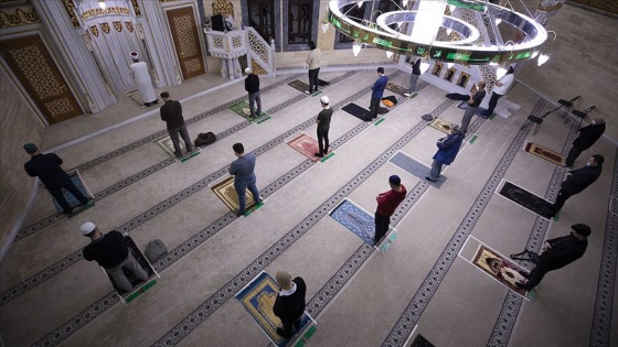 Camiye girmeden önce isimleri ve iletişim bilgileri alındıktan sonra ellerini dezenfekte eden Müslümanlar, camide 1,5 metrelik sosyal mesafe kuralına uyarak saf tuttu ve maskeyle namazı eda etti.