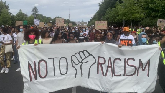 Gendermenmarkt Meydanı'nda "Irkçılığa hayır" sloganıyla toplanan yaklaşık 2 bin kişi, Brandenburg Kapısı'nın önünden Zafer Anıtı'na kadar yürüdü.