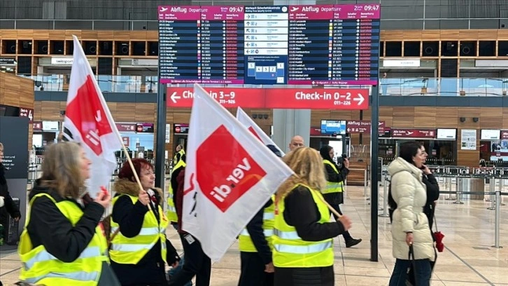 Uyarı grevi sebebiyle Berlin-Brandenburg Havalimanı’nda yaklaşık 270 uçuş iptal edilirken, çalışanlar havalimanı önündeki Willy-Brandt Meydanı'nda toplanarak gösteri yaptı.