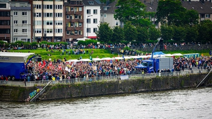 Widdersdorf'taki Neue Sandkaul Lisesinde düzenlenen AfD'nin bölge parti konferansını protesto etmek amacıyla okulun önünde düzenlenen gösteriye yaklaşık 4 bin kişi katıldı.