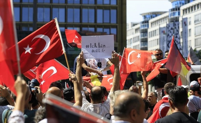 Almanya'nın başkenti Berlin'de yüzlerce kişinin katılımıyla, ırkçı ve ayrımcı saldırılar nedeniyle Alman Milli Takımı'ndan ayrılan Türk asıllı futbolcu Mesut Özil'e destek gösterisi düzenlendi.