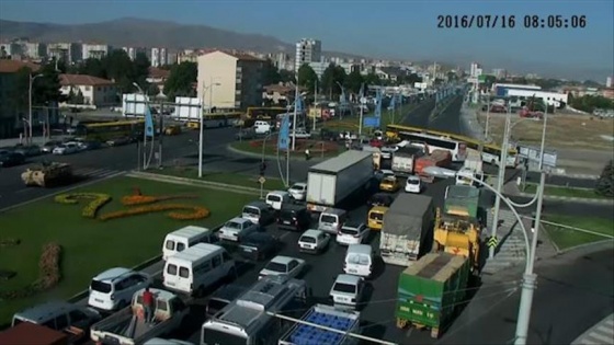 Görüntülerde ayrıca ters şeritten gelen zırhlı araçların trafik polislerinin olduğu noktadan yolun diğer tarafına geçtikleri, bu sırada bir belediye otobüsü şoförüyle trafik polislerinin araçlarını çevirerek zırhlı araçları takip etmek için peşlerinden gittiklerini görülüyor.