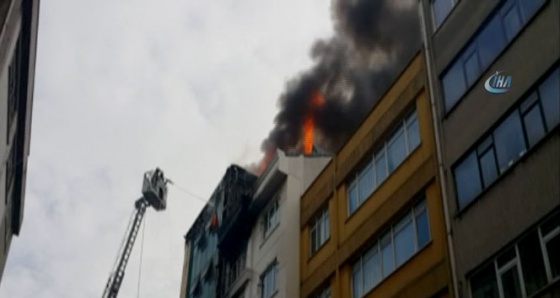 İstanbul Kağıthane'de 8 katlı alüminyum firmasının çatı katında yangın çıktı. Çatı katından yayılan alevler, binanın diğer katlarına da sıçradı.