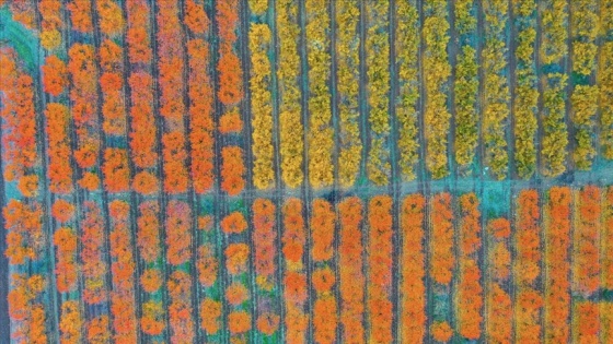 Hatay'ın Hassa ilçesi Amanos Dağları eteklerindeki meyve bahçeleri, sonbahar renklerine büründü.
